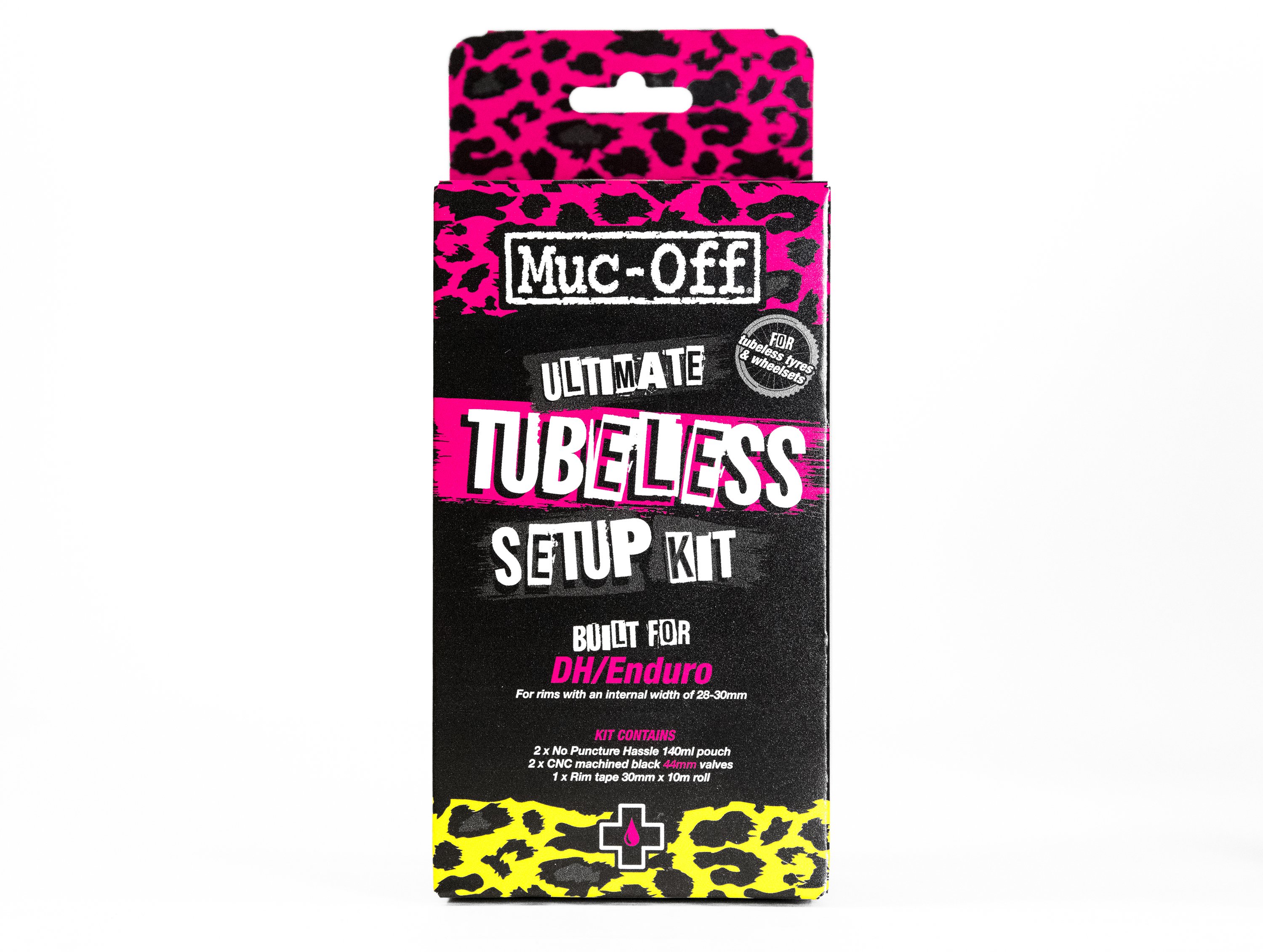 Ultimate Tubless Setup Kit: (UVP 45,00€) im Kit enthalten sind Felgenband, Dichtungspatches, zwei tubeless Ventile und zwei Packungen des No Puncture Hassle Tubless Sealant.